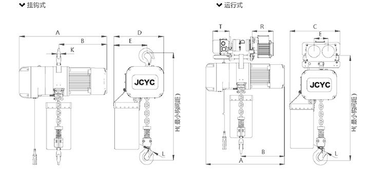 掛鉤式環鏈電動葫蘆(0.25T-5T)尺寸參數